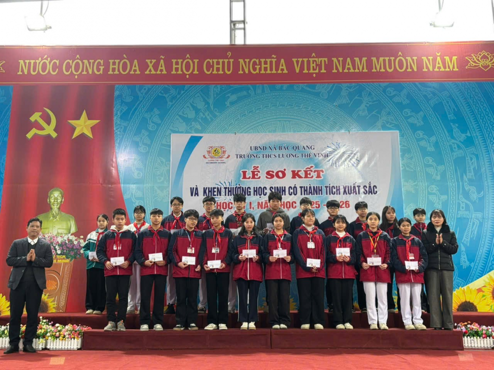 Sáng ngày 02/2/2026, Trường THCS Lương Thế Vinh tổ chức Lễ sơ kết học kỳ I năm học 2025–2026 nhằm đánh giá kết quả thực hiện nhiệm vụ giáo dục trong học kỳ I và biểu dương, khen thưởng các tập thể, cá nhân học sinh có thành tích xuất sắc.