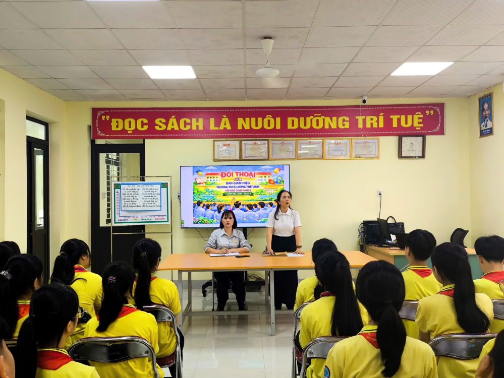 Nhằm tăng cường sự gắn kết giữa Ban Giám hiệu nhà trường với học sinh, đồng thời kịp thời nắm bắt tâm tư, nguyện vọng của các em học sinh cuối cấp, Trường THCS Lương Thế Vinh đã tổ chức buổi đối thoại trực tiếp giữa Ban Giám hiệu và học sinh khối 9.